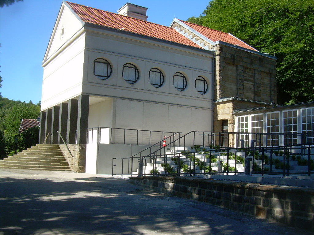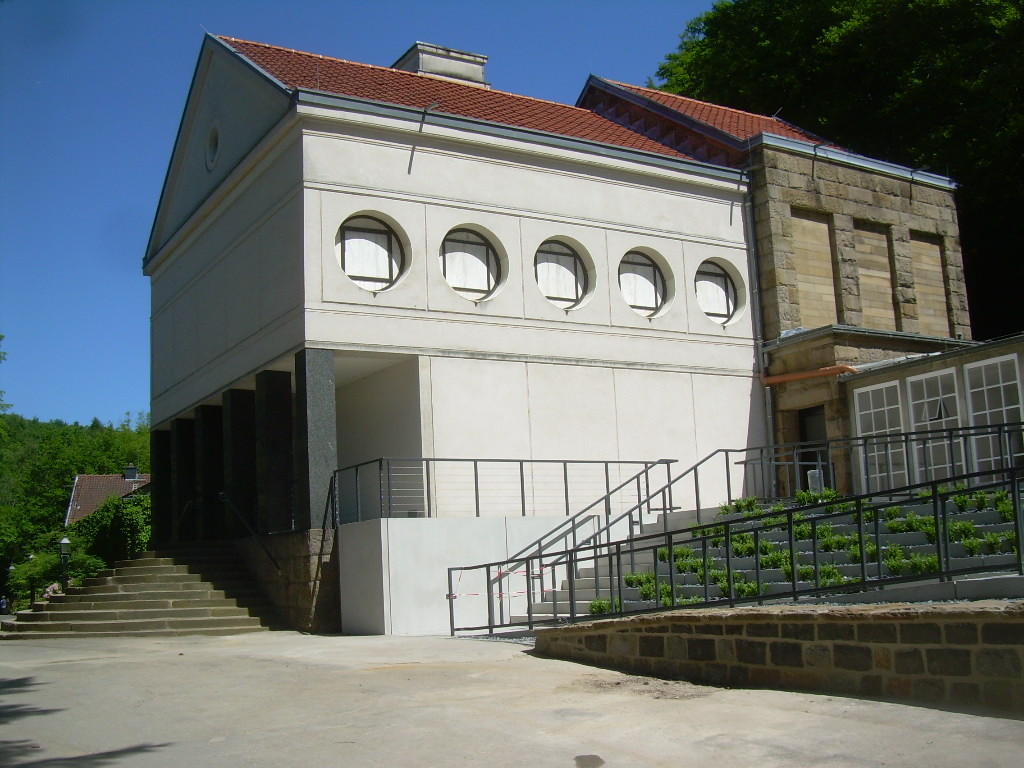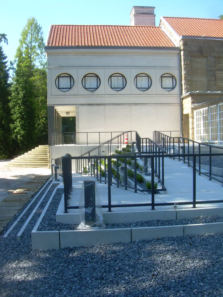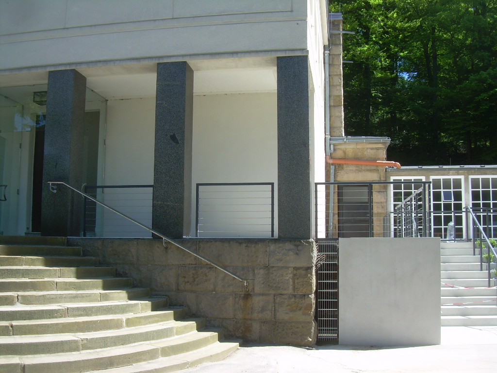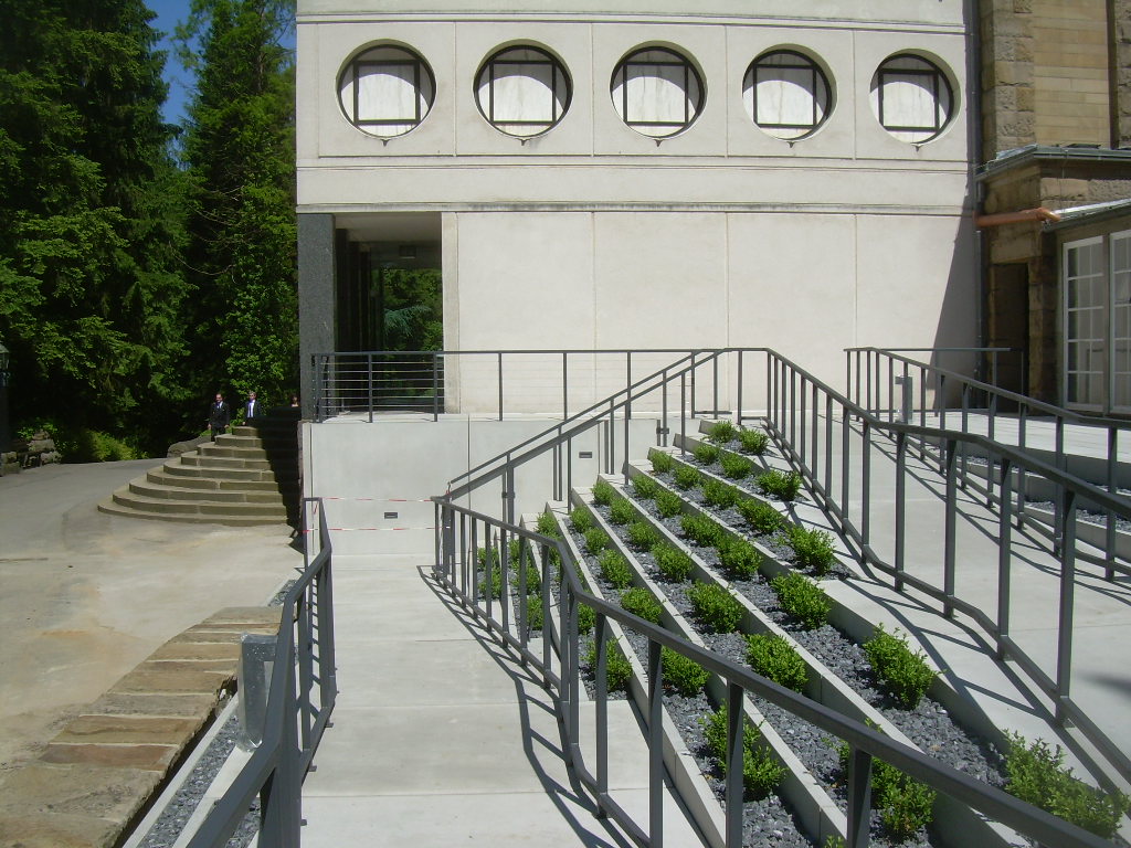Das 1906 bis 1907 von Peter Behrens erbaute Krematorium war die erste Anlage für Feuerbestattungen im damaligen Preußen. Die Gesamtplanung von Peter Behrens sah ursprünglich vor, das Krematorium mit Trauerhalle seitlich und rückwärtig mit einem Kolumbarium zufassen, fertiggestellt wurde nur der Hauptbau mit der senkrecht zum Hang gestellten Andachtshalle. Durch die Hanglage bedingt ist die Andachtshalle nur über eine halbkreisförmige zentrale Treppenanlage zugänglich und somit nicht barrierefrei erschlossen. Der Vorschlag zur barrierefreien Erschließung nimmt den Gedanken der terrassenartigen Erschließung zum ursprünglichen geplanten Kolumbarium auf und schafft so eine zum Denkmal maßstäbliche und zurückhaltende Lösung.