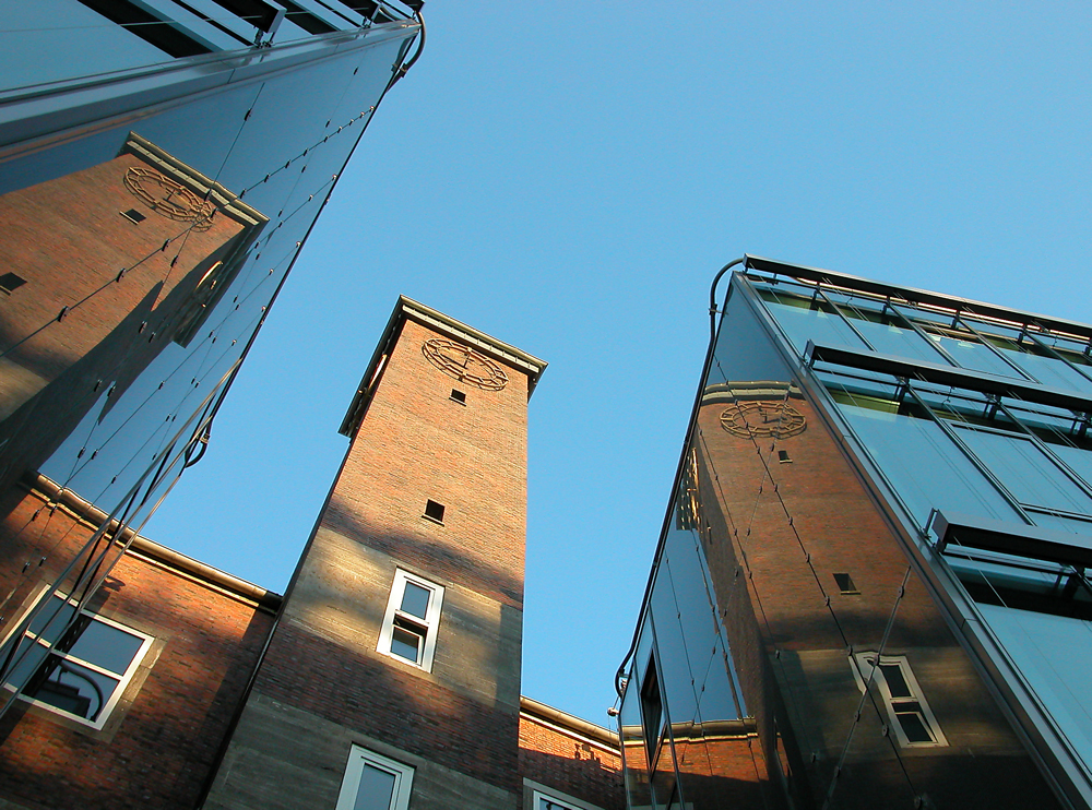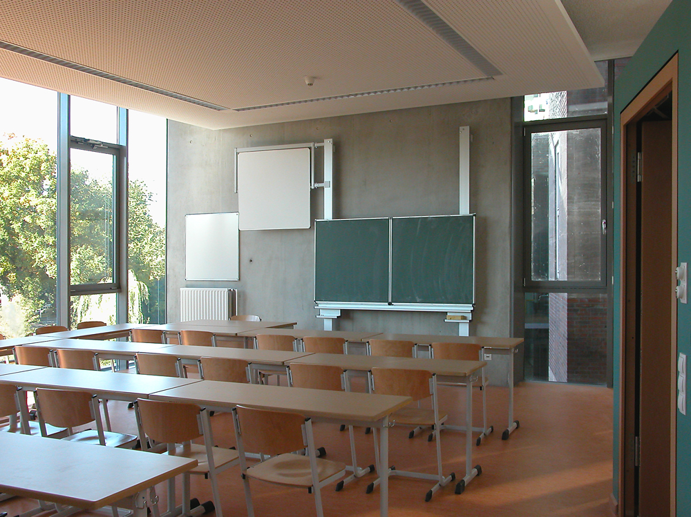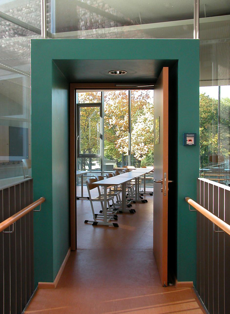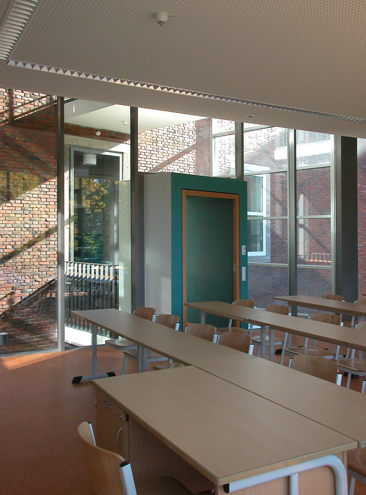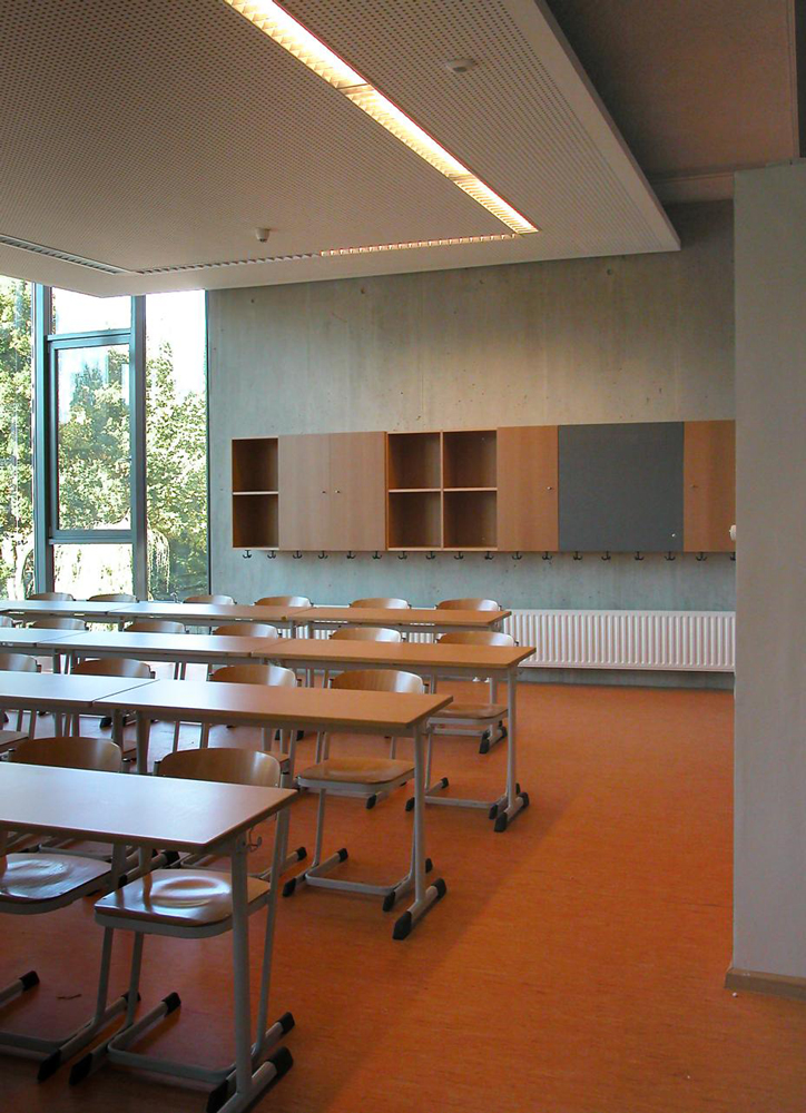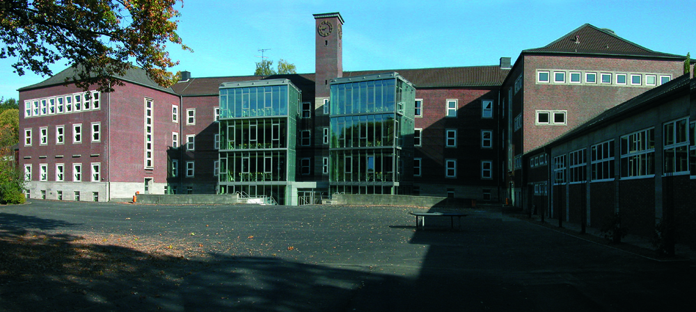 Zwei in jeweils eigener Winkelstellung zum Hauptgebäude angeordnete "gläserne Türme" nehmen die Erweiterung der Schillerschule mit sechs Klassenräumen und einem Schülercafé auf. Durch die Drehung der Türme um 5° bzw. 15° schaffen sie einen Kontrapunkt zur Strenge der nahezu symmetrischen Schulanlage aus den zwanziger Jahren. Die Türme stehen im Kontrast zu der Schwere des Altbaus. Im Äußeren sind diese so unterschiedlichen Gebäude jeweils ein Ausdruck ihrer Zeit.
