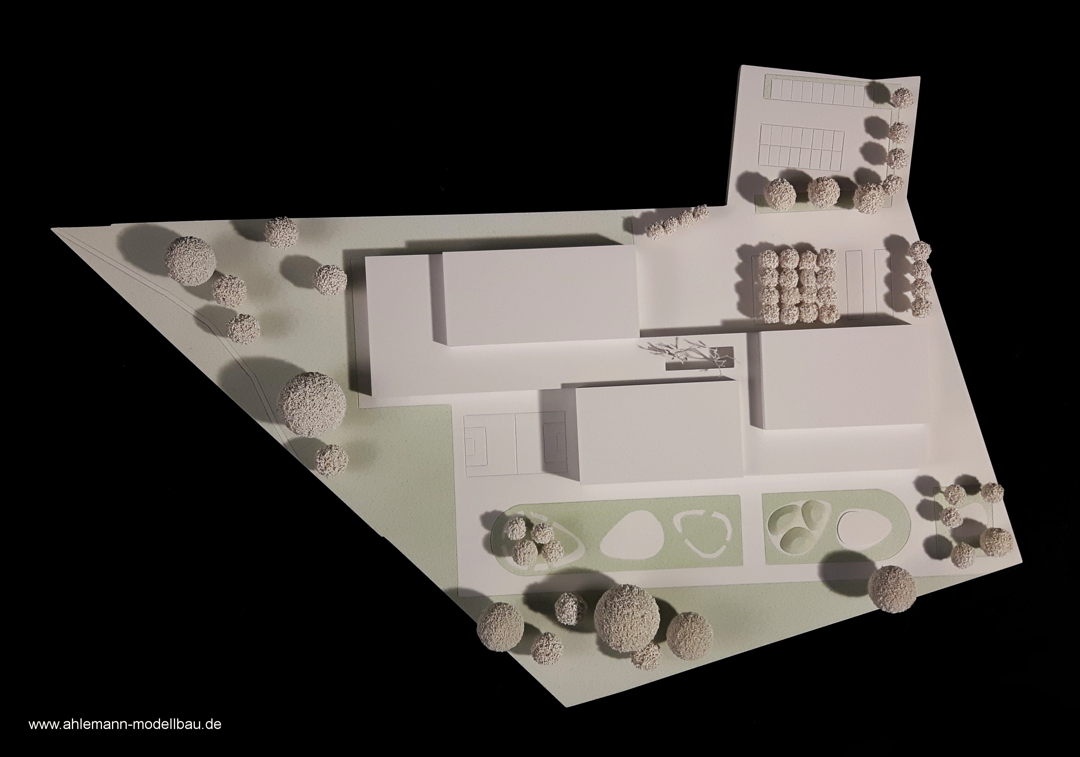 Das Leitbild für das neue Quartier wird durch den vorhandenen Baumbestand auf dem ehemaligen Schulgelände geprägt und wird zum „Wohnen im Park“ städtebaulich entwickelt. Die neue Schulanlage ist in die mit Bäumen umgebende Grünfläche eingebettet und wird mit dem Zugang zur Schule und den Sportbereichen von der Hervester Straße erschlossen. Die differenzierte Gebäudefigur mit einem überdachten Eingangsbereich sorgt für eine deutliche Adressbildung der Schule im Stadtteil. Das neue Schulhaus besteht aus einem eingeschossigen Hauptgebäude - ähnlich einer Basis - mit im ersten Obergeschoss aufgesetzten Kuben, die als Jahrgangsteams ausgebildet sind. Durch die Gliederung des Gebäudevolumens in einen Sockel mit Attikahäusern wird das Ensemble zu Einem gefasst und dabei differenziert ausgeformt. Die Ausbildung der ablesbaren Jahrgangshäuser trägt zur Wiedererkennung und zur Identifizierung der Schüler mit ihren Teams bei. Das Umfeld des Schulhofs ist als extensive Landschaftsrasenfläche angelegt. In diese sind Felder mit Wildblumenwiesen und die bestehenden Bäume integriert. Durch die Setzung von Findlingen und Bäumen werden zudem besondere Orte definiert.