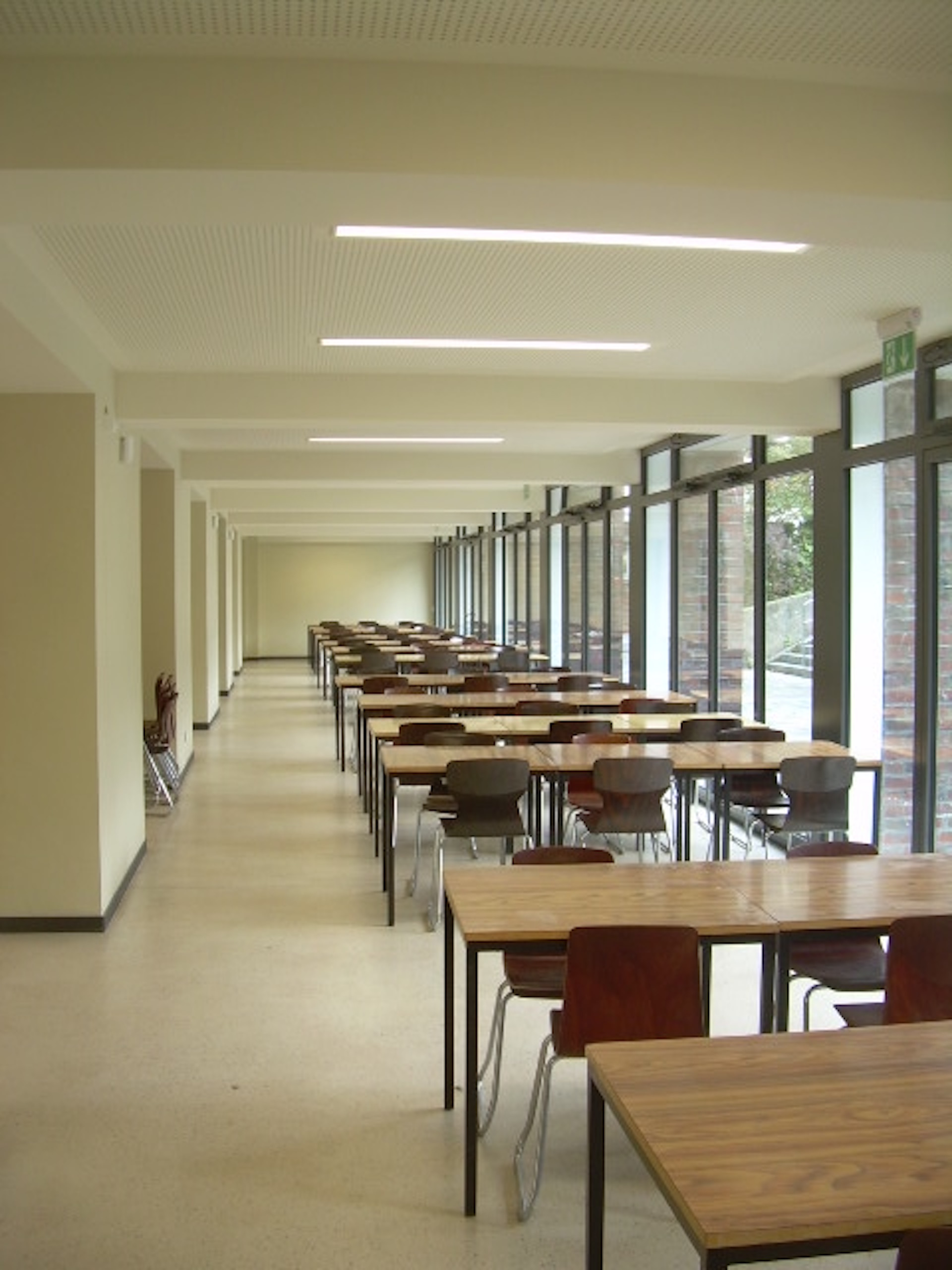 Das Schulgebäude des Architekten Josef Franke aus dem Jahr 1931, wurde komplett saniert. Hierbei galt es, im Zuge der Sanierungs- und Umbaueingriffe in das Gebäude, ein besonderes Augenmerk auf eine Detail- und Werkgetreue Umsetzung der Arbeiten im Sinne des Architekten fortzuführen. Die Umsetzung fand unter laufendem Betrieb statt, folgende Maßnahmen waren Bestandteil der Planungsaufgabe: Sanierung Klassenräume, Sanierung Aula, Sanierung Verwaltungsgebäude, Sanierung Turnhalle, Integration Schülercafe, Erweiterung Ganztag, Brandschutzsanierung, Einbau eines Aufzuges zur barrierefreien Erschließung.