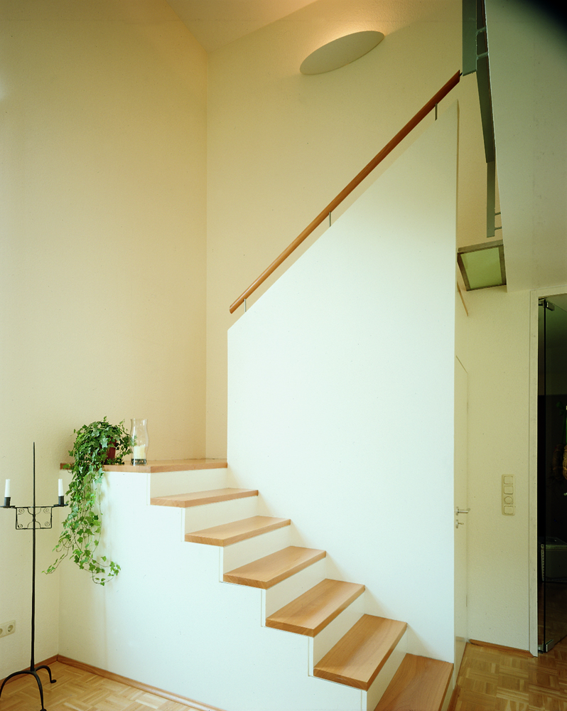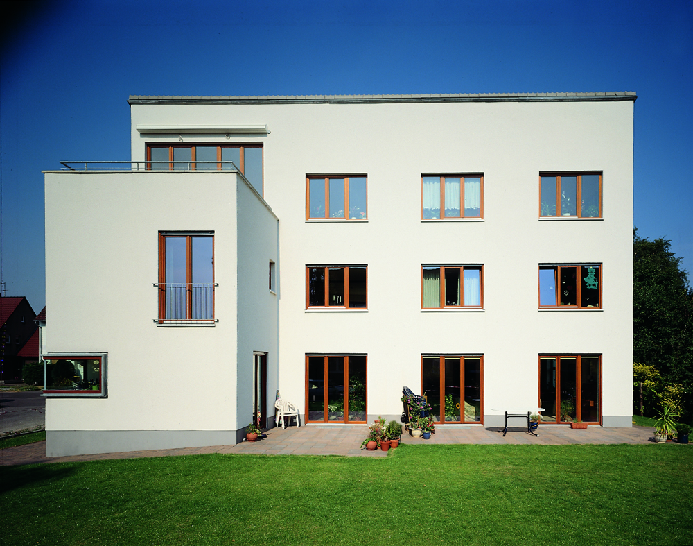 Für drei Familien mit unterschiedlichen Wohnbedürfnissen galt es individuelle Wohnungen unter einem Dach zu einem Haus zusammenzufassen. Nach dem „Haus im Haus“ Prinzip wurden für jede Familie ein Haus mit eigenem Eingang, ähnlich der Wohnungsbeispiele aus Holland, entwickelt. Im Erd- und Obergeschoss sind jeweils zwei Reihenhäuser angeordnet, im darüber liegenden Dachgeschosse eine Maisonette Wohnung.