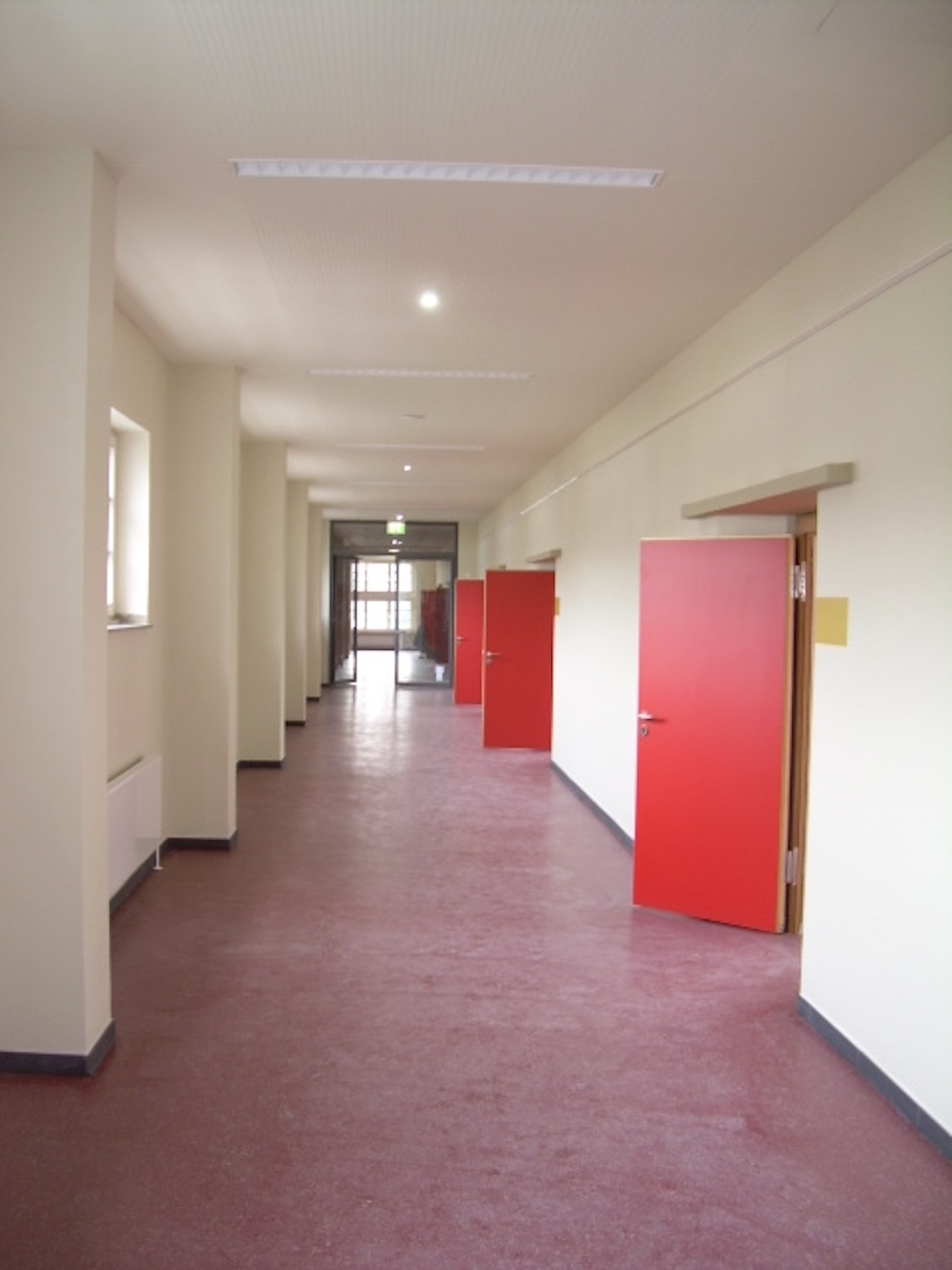 Das Schulgebäude des Architekten Josef Franke aus dem Jahr 1931, wurde komplett saniert. Hierbei galt es, im Zuge der Sanierungs- und Umbaueingriffe in das Gebäude, ein besonderes Augenmerk auf eine Detail- und Werkgetreue Umsetzung der Arbeiten im Sinne des Architekten fortzuführen. Die Umsetzung fand unter laufendem Betrieb statt, folgende Maßnahmen waren Bestandteil der Planungsaufgabe: Sanierung Klassenräume, Sanierung Aula, Sanierung Verwaltungsgebäude, Sanierung Turnhalle, Integration Schülercafe, Erweiterung Ganztag, Brandschutzsanierung, Einbau eines Aufzuges zur barrierefreien Erschließung.